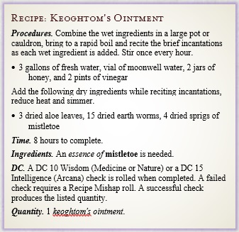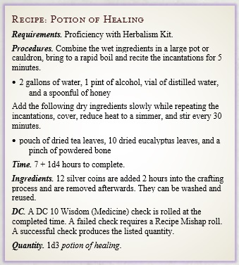 To brew a potion, oil, incense, elixir, salve, ointment, candle, philter, perfume, ritual, or poison, a recipe is often required for success.
